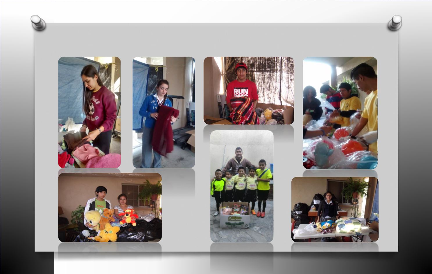 Participando en la elaboración de bolos, seleccionando ropa y apoyo en la entrega de beneficios así como